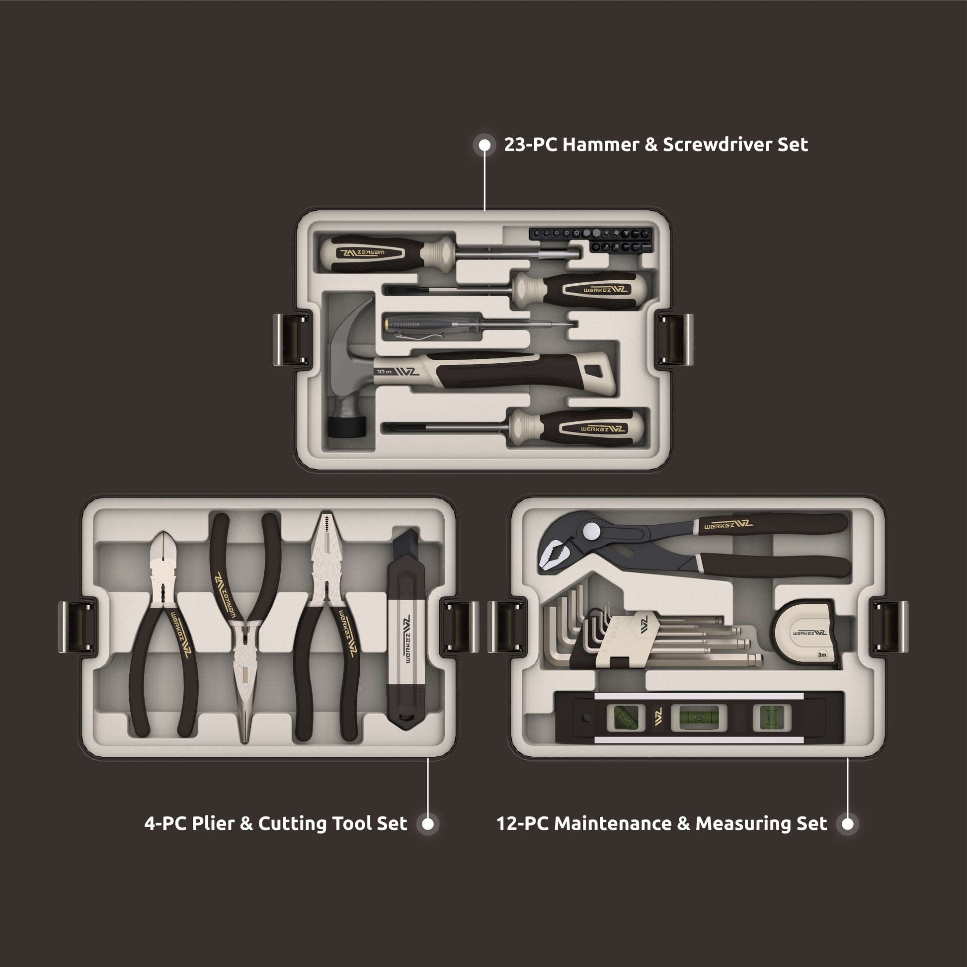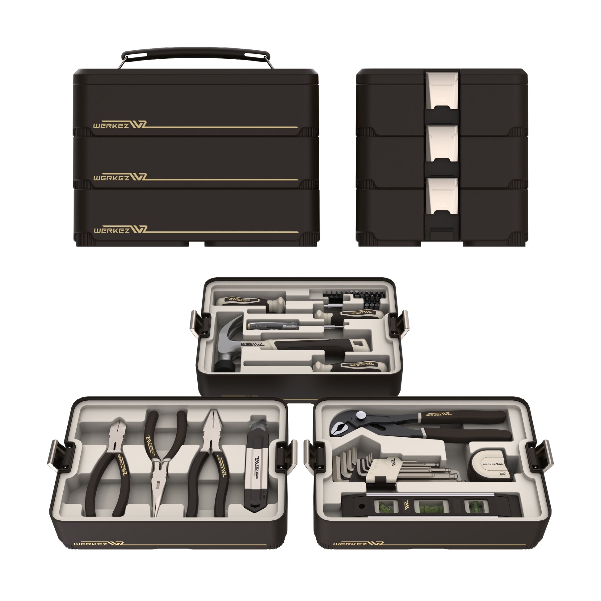 There's no need to wait impatiently for a handyman to arrive, or rummage through messy drawers for a rusty screwdriver. The Werkez Home Repair Tool Kit packs professionalism and thoughtful organization into one box.